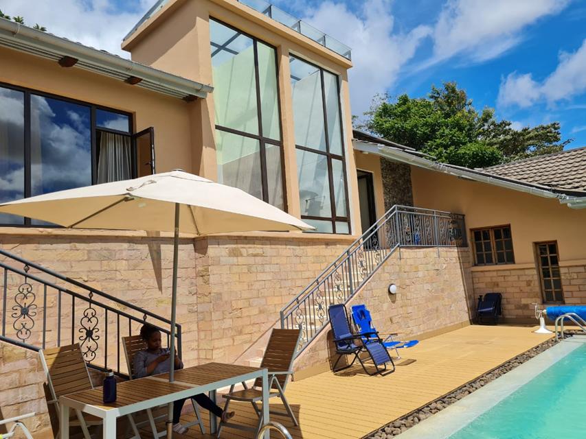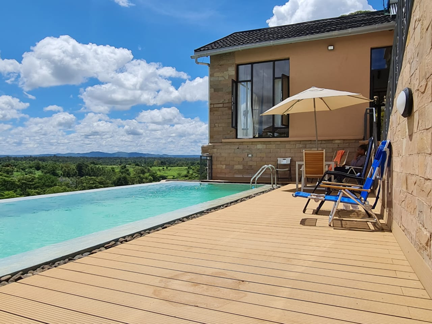 Located cliffside in Sagana, Kenya, this stunning 4-bedroom home offers a secluded retreat with breathtaking views. The modern design, featuring natural finishes, harmoniously blends with a pre-existing structure, seamlessly integrating the old with the new.