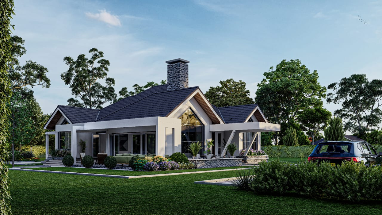 The project is complete with well landscaped surroundings enhance the home's connection to nature, providing a serene and pleasant outdoor environment. This bungalow exemplifies how modern design and natural elements can come together to create a stylish and welcoming retreat