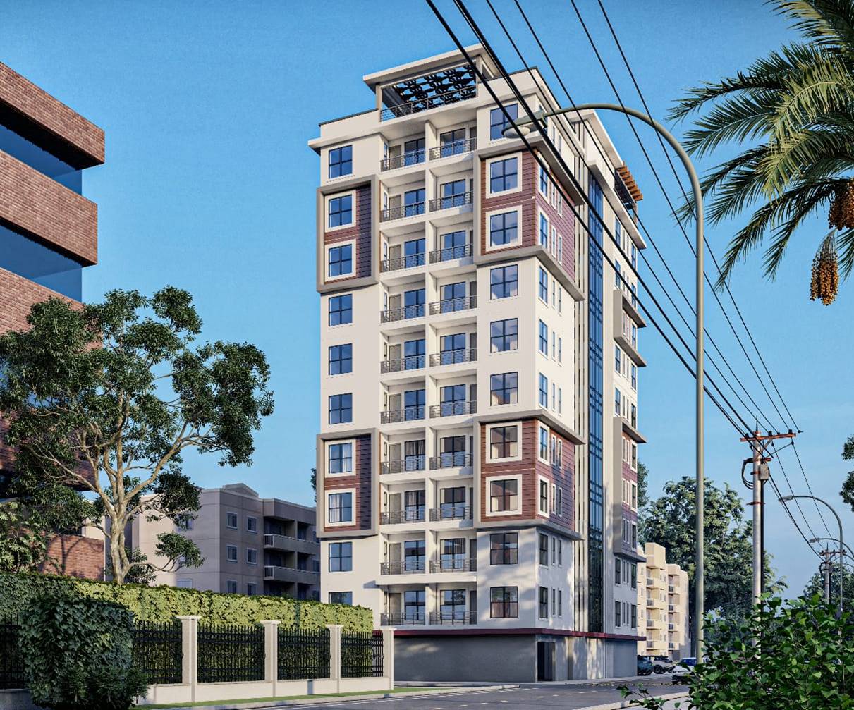 This modern apartment block offers spacious 2-bedroom units designed for comfortable urban living. Each apartment features a contemporary layout with high end finishes. The development includes a range of convenient amenities, such as fully equipped conference rooms for meetings, a fully equipped gym, secure parking, 24 hour surveillance, and laundry services to cater to residents' needs.