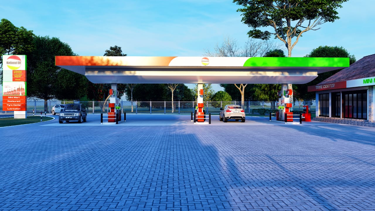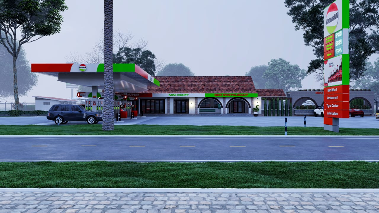 This design is for a Trojan petrol station in Kiboko, featuring a bar and lounge alongside essential services. The station includes a convenience store and eatery chemist, providing a comprehensive stop.
