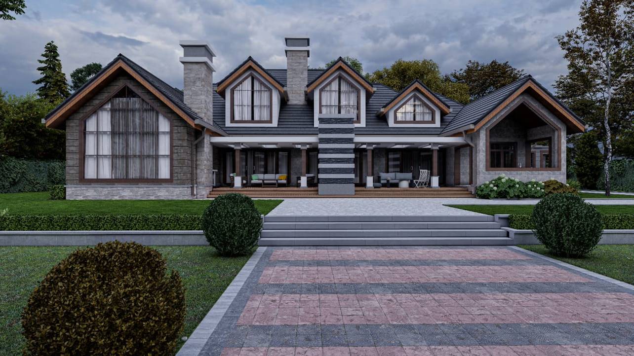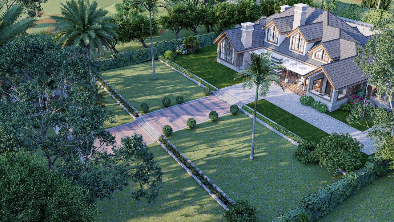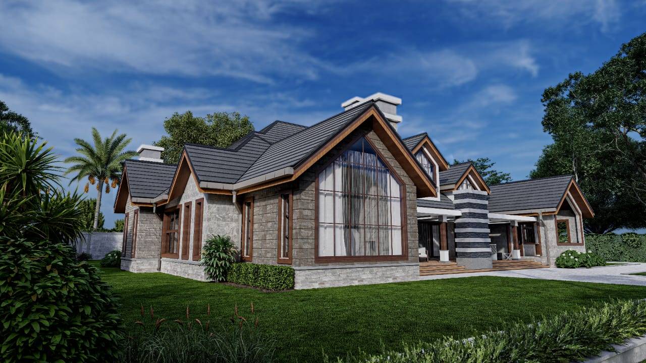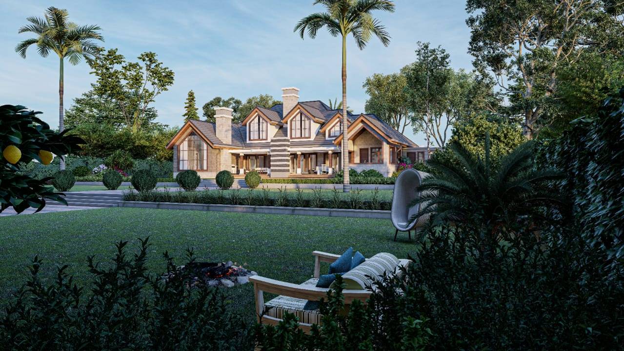 This charming 6-bedroom bungalow in Nyeri, Kenya, embodies the classic grandeur of a farmhouse with its inviting and timeless design. Characterized by distinctive gable windows, the home boasts a rustic elegance that enhances its farmhouse aesthetic.